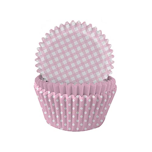 La confezione include: 75 custodie per cupcake in carta stampata (25 gingham, 25 rosa massiccio, 25 pois)