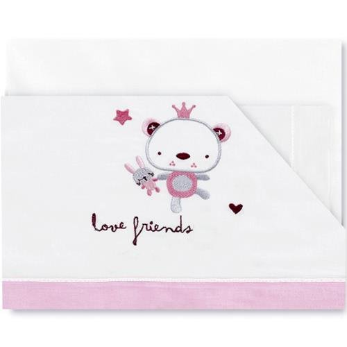 Pirulos 00212314 - Lenzuola, motivo Love, 40 x 80 cm, colore: bianco e rosa