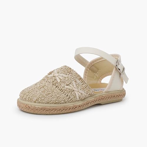 Pisamonas Alpargata Tira bordada Hebilla Talla 24 en Color Natural