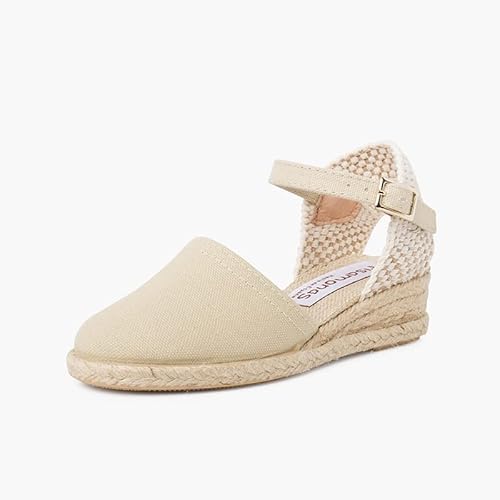 Pisamonas Alpargatas de Cuña Niña y Mujer con Hebilla Talla 34 en Color Beige