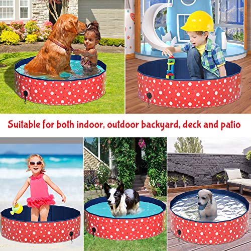 【Pieghevole e portatile】 La nostra piscina per bambini può essere piegata e ha 2 metodi per piegare, molto portatile da riporre, risparmiando spazio e tempo, che puoi portare quando esci (assicurati che sia completamente asciutta prima di riporla). Il foro di drenaggio incorporato adotta il design dello scarico a spirale, ruota e si apre, comodo per lo scarico rapido e il coperchio è ben sigillato, non devi preoccuparti che l'acqua coli.