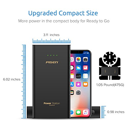 PISEN Power Station 20000mAh (NERO)Caricabatterie portatile portatile, batteria esterna, uscite USB 2, puoi risparmiare tempo, utilizzare l'elegante design del telefono cellulare, tablet PC Powerbank