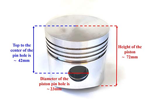 Specifiche del pistone: Materiale High Strengh Aluminum Alloy - S108/109 O JIS AC8A, Lunghezza pistone: 71.6, Distanza di compressione pistone: 41.5, Ring Comp: 3-2, Anello Olio: 1-4, Diametro pin & Lunghezza: 23-63