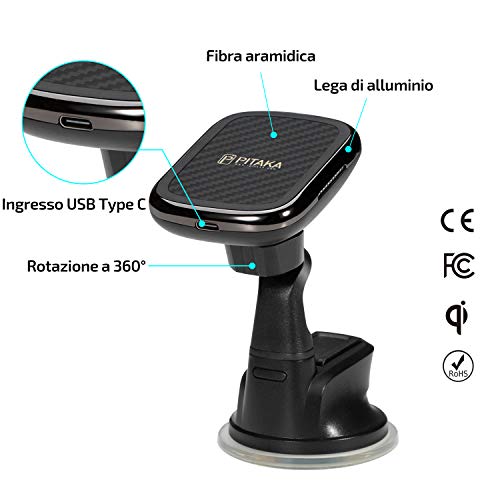 PITAKA Porta Cellulare da Auto Supporto Cellulare Auto Magnetico Carica Wireless Supporto per Auto MagEZ Mount Qi Ideato per le Cover Cellulare PITAKA MagEZ Case Aggancio Magnetico - Ventosa