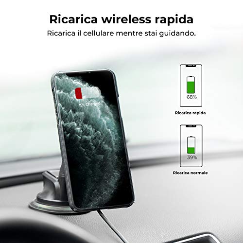 [Sicuro e stabile] I magneti N52-T super forti garantiscono grande stabilità del cellulare sul supporto. La ricarica wireless è veloce e sicura, e la ventola di raffreddamento ne garantisce l'efficen