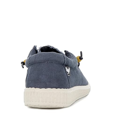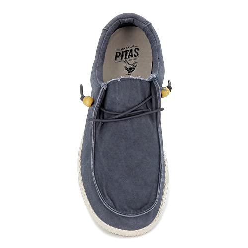 Pitas Mocassino Uomo WP150-WALLY di Tela Colore Blu con Laccetti (Numeric_45)