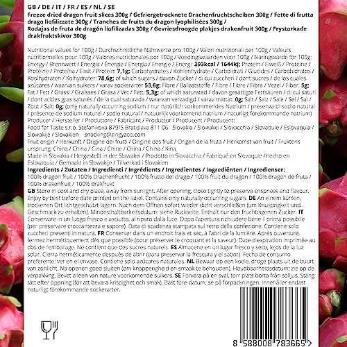 Pitaya Dragon Fruit | XL 300g Frutto del Drago da Mangiare Frutta Liofilizzata Freeze Dried Fruit Pitahaya | Esotica Frutti Rossi Disidratati Frutto del Dragone Senza Zucchero Vegan Pink Smoothie Rosa