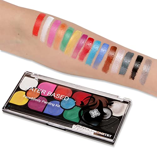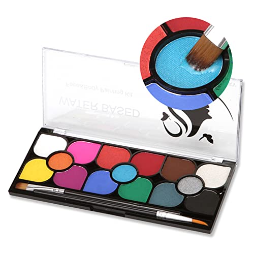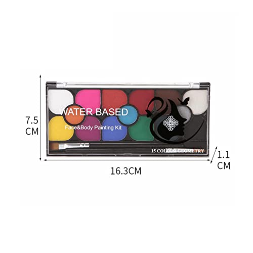 ❥15 colori pittura viso: contiene 15 colori per la pittura del viso e del corpo, 2 pennelli. Qualsiasi combinazione di colori diversi può ottenere un nuovo colore, puoi fare il fai-da-te a piacimento, sarai piacevolmente sorpreso di ottenere un nuovo colore.