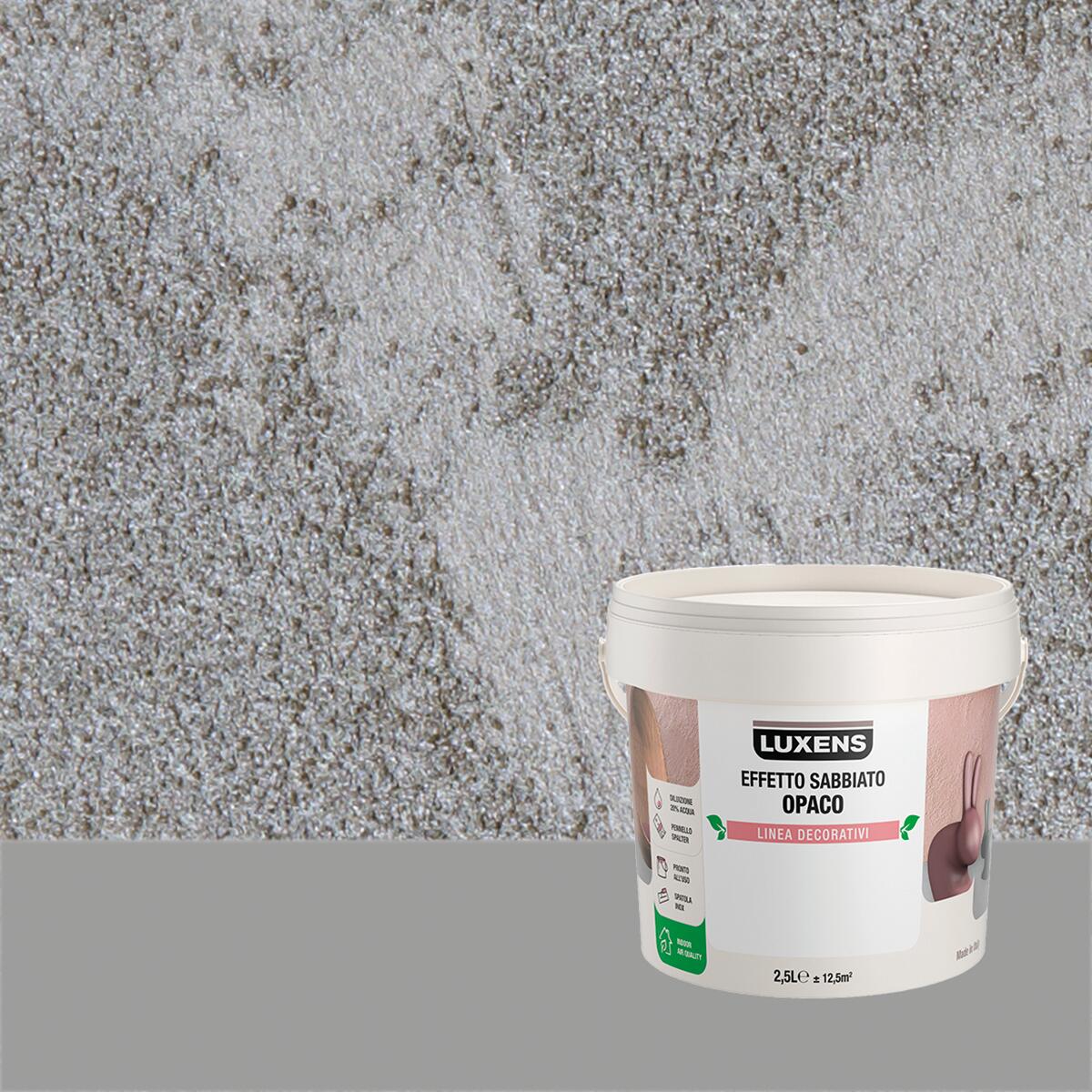 Finitura decorativa per interni, ad effetto sabbiato opaco. LUXENS EFFETTO SABBIATO OPACO è una finitura decorativa testurizzata, per interni ad effetto sabbiato opaco. LUXENS EFFETTO SABBIATO OPACO è costituita da copolimeri sintetici in dispersione acquosa, mix di cariche selezionate, pigmenti perlescenti.. Decorare e abbellire pareti e soffitti dei locali domestici all'interno.. Effetto sabbiato opaco.. Facile da applicare.