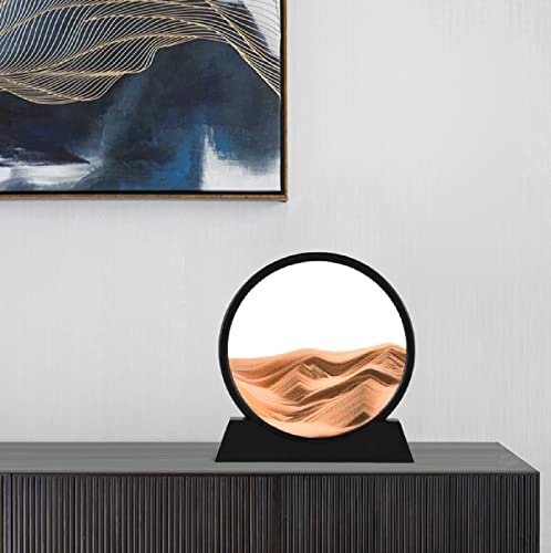 3D pittura con sabbia dinamica, mobile art pittura con sabbia immagine rotonda vetro 3D scena di sabbia d'altura dinamica cornice di sabbie mobili home office lavoro decorazione del desktop
