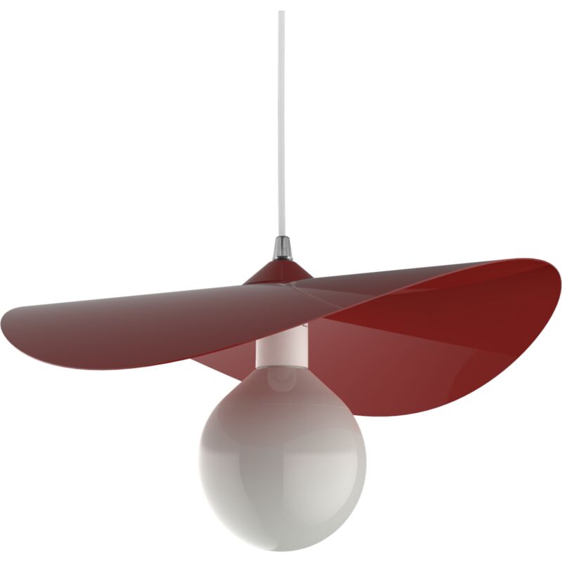 Piuma è una sospensione dall'aspetto moderno e particolare. La lastra curva conferisce dinamismo e originalità al prodotto. La sospensione è interamente verniciata a polvere epossidica ed è equipaggiata con portalampade E27 e cavi di alimentazione in PVC.