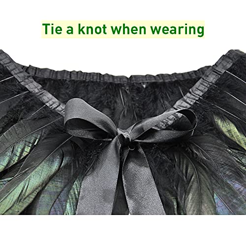 MATERIALE DI ALTA QUALITÀ: Lo scialle di piume nere ha piume naturali lisce, nastro morbido nero. Le piume nere e metalliche verdi sono belle sotto la luce.