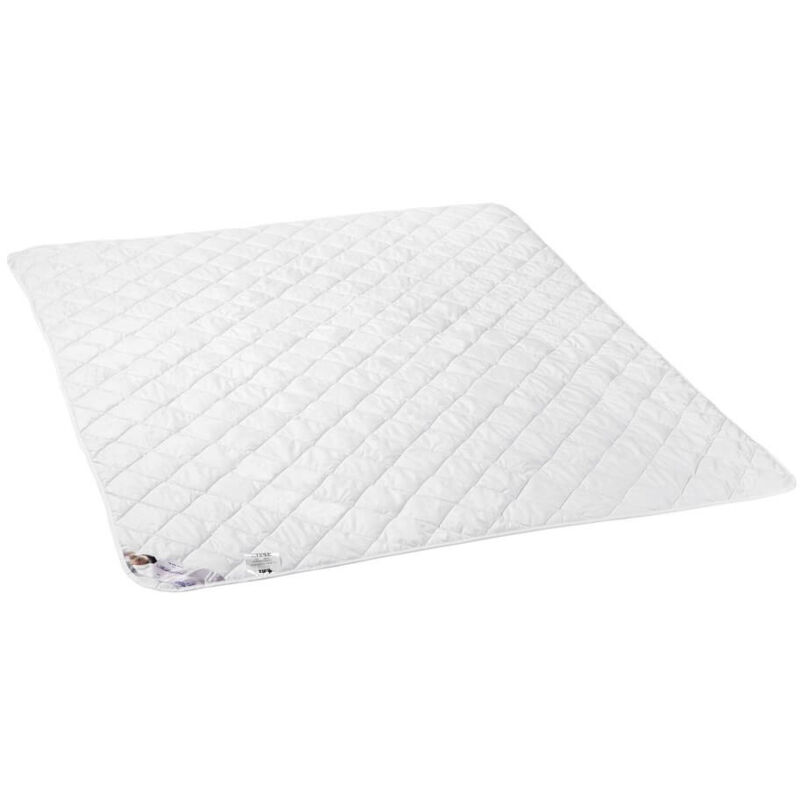 Piumino in microfibra, Collezione: Healthy Sleep, Misura: 200x220, Stagionalità: estiva, per la sua eccezionale leggerezza, Colore: bianco, Tessuto: microfibra francese, 100% poliestere, Finitura: piumino trapuntato con distribuzione uniforme dell'imbottitura, rifinito con bordino. Imbottitura del piumino: AMZ dream-fill, fibra di poliestere HCS (Hollow Conjugate Siliconized) ritorta a spirale, altamente elastica, siliconata - sotto forma di tessuto non tessuto, Peso dell'imbottitura: 440 g, Il prodotto ha il certificato "TRUSTWORTHY TEXTILES", testato per sostanze nocive secondo OEKO-TEX® Standard 100 "Imballaggio: pellicola sul davanti e tessuto blu navy sul retro e sui lati.