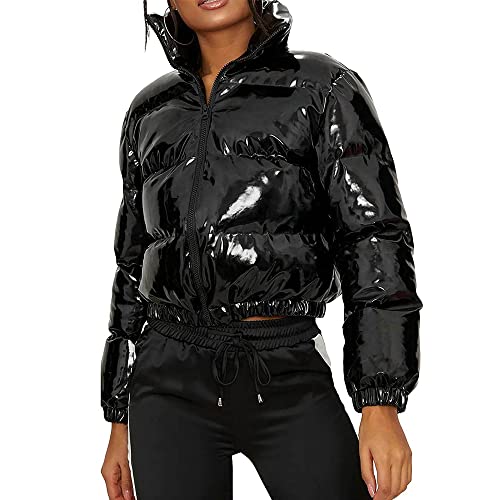 ❄Design unico: giacca parka, collo in piedi, pelle PU lucida, zip frontale, piumino trapuntato con due tasche, piumino leggero, caldo d'inverno e impermeabile.