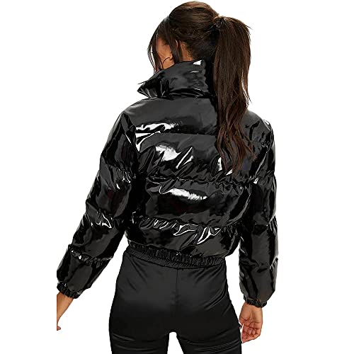 Piumino moda donna Piumino corto invernale Piumino lucido in pelle PU Zipper trapuntato a bolle Cappotto caldo manica lunga Capispalla