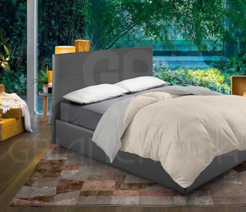 Piumino Invernale Morbidissimo Tinta Unita Double Face in Calda Microfibra Anallergica Panna Tortora (2 Piazze 250x200cm)