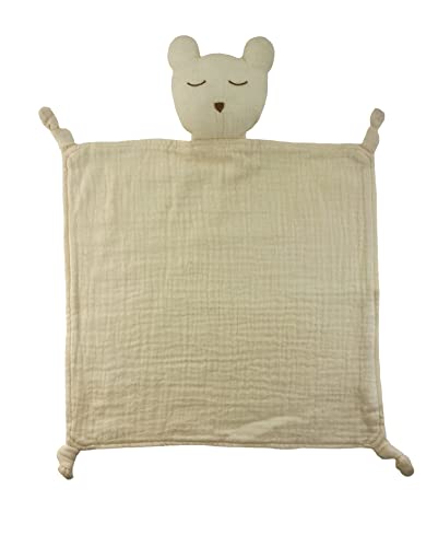 Piumino in Mussola di Cotone Organico al 100%, Simpatica Coperta di Sicurezza a Forma Di Animale, Regalo per il Neonato Orso (bianco crema)