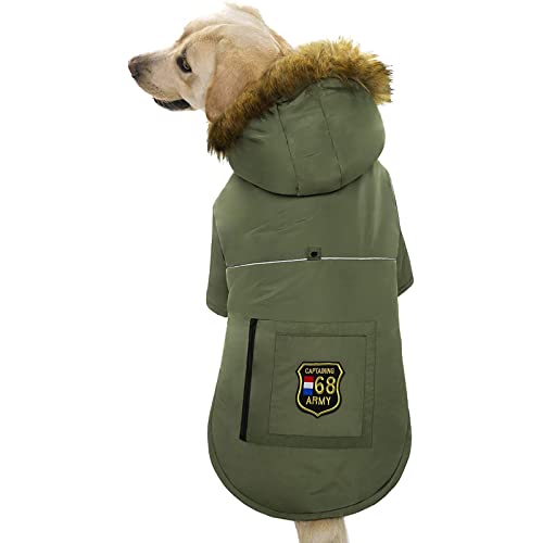 Piumino Per Cani Di Taglia Grande Cappotto Invernale Impermeabile Con Cappuccio Vestiti Riflettenti Per Cani Caldi Abbigliamento Spesso Imbottito Per Cani Di Taglia Media Con Vera Tasca(Size:38)