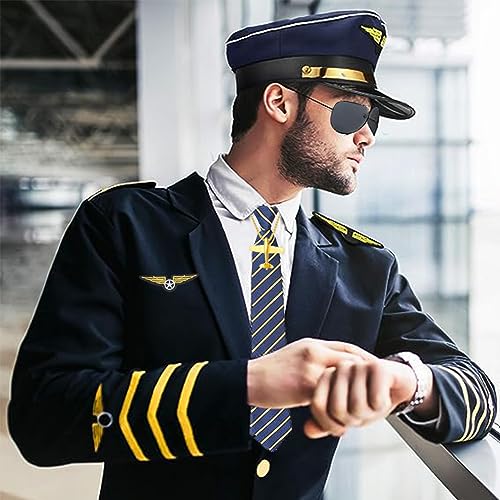 PIUMOJ Airline Pilot Captain Costume, Accessori da Capitano Pilota, Set di Costumi da Pilota Accessorio con Cappello Cravatta Distintivo Occhiali da Sole Collana, per Halloween Cosplay Party, 5 Pezzi