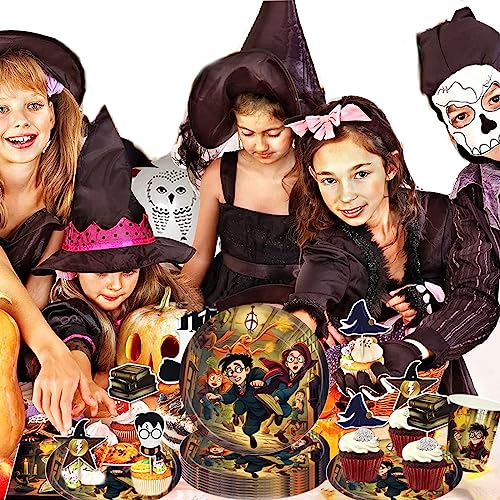 PIUMOJ Stoviglie per Feste Harry, Set Stoviglie Harry, Piatti Potter Compleanno, Tovaglioli, Bicchieri, Decorazioni Magiche Compleanno, Wizard Tema Forniture per Feste, 20 Ospiti
