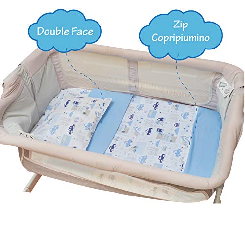 DESIGN MULTIUSO: Il lenzuolo di sopra a sacco lo rende Reversibile e Double Face. E' dotato di una Zip nella parte bassa del lenzuolo, che permetterà di usarlo come un classico lenzuolo, o di inserire un piumino in inverno. La Zip è ben nascosta e non crea nessun problema, ne al design ne alla salute del vostro bambino.