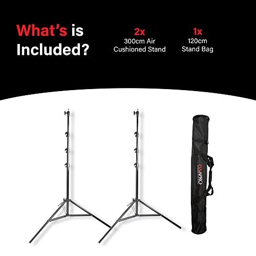 PIXAPRO 300cm 3m Aria Imbottita Stativo Per Luci Sezione 3 Large Stand Studio 0.6cm & 1cm intercambiabile giunto (raccordo a pressare standard) Forte ✔Venditore garantire ✔ Più spesso Diametro Del Tubo & Gamba Più Ampia Plus 120cm Stand Lite Bag