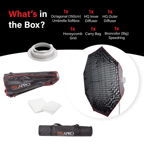 PIXAPRO Softbox ottagonale facile da aprire per ombrelli | Youtuber starter kit fotocamera pellicola | luce chiave foto LED scatola luminosa | Youtubers Life 2 illuminazione fotografica Lightbox (Broncolor (B), 150 cm)