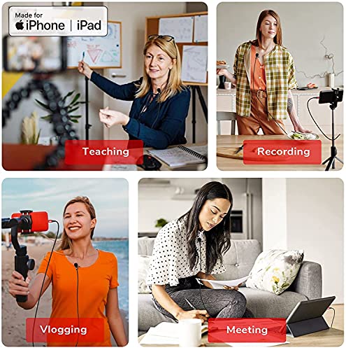 【Suono chiaro e coerente】Per riprodurre un suono chiaro e coerente, nel microfono sono incorporati un filtro antirumore e un chip di soppressione per la registrazione video dell'iPhone. Quindi può indebolire il rumore di fondo e raccogliere ogni parola che dici.Ideale per interviste, vlog di YouTube, live streaming, FaceTime, Skype, voice over, video.