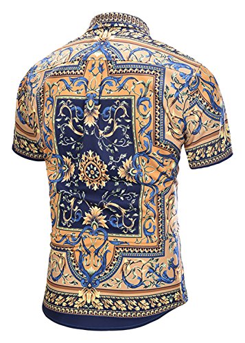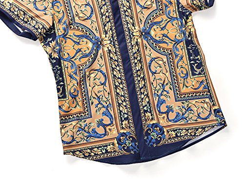 PIZOFF Camicia Lussuosa Stampa Barocco Elegante Uomo a Maniche Corte