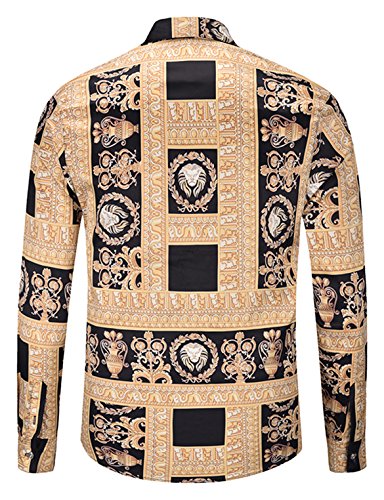PIZOFF Camicia Stampa Barocco Elegante Uomo a Maniche Lunghe