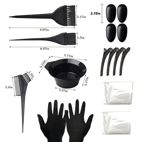 ❤【Set per tintura colorazione da 22 pezzi】Include 2 ciotole per tintura, 4 pennelli per tintura dei capelli, 2 spazzole a doppia estremità, 2 paia di protezioni per le orecchie in plastica, 4 clip per capelli, 1 paio di guanti in lattice, 2 paia di guanti monouso, 2 copri capelli monouso.