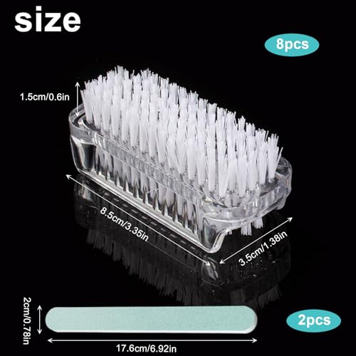 Pizsieat 8 Pezzi Spazzola Unghie, Spazzolino Unghie Mani in Plastica Resistente Spazzola per la Pulizia delle Mani con 2 Lime per Unghie per Pulire le Cuticole delle Unghie(115x69mm)