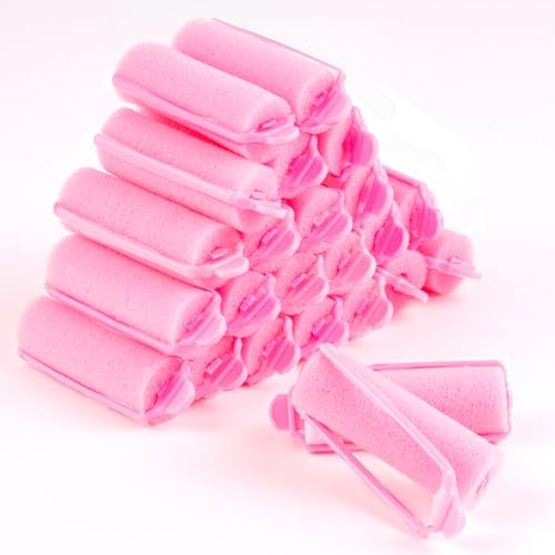 Pizsieat 30 Pezzi Spugna Bigodini, Bigodino di Schiuma, Bigodini per Capelli, Rulli per Capelli in Spugna, Bigodini in Schiuma Flessibile per Donne Ragazze e Bambini Fai da te Capelli (25mm, Rosa)
