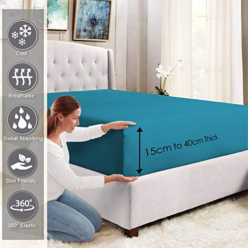 Pizuna Lenzuolo con angoli in cotone con filato da 400 lenzuolo con angoli 140x200 Blu Zaffiro, 1pz lenzuolo con angoli 100% in cotone a fibra lunga satinato, profondità fino a 40cm