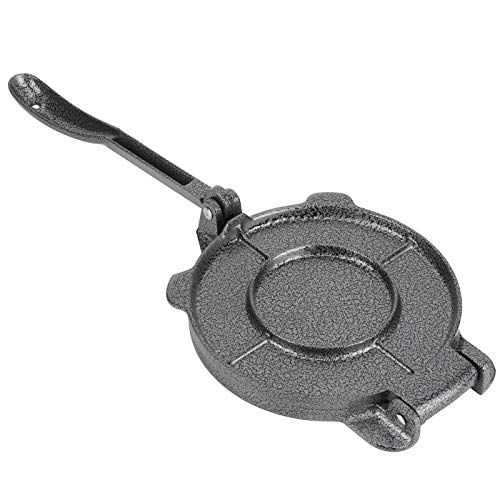 MATERIALE: Tortilla maker adotta ghisa per impieghi gravosi, che è durevole e di lunga durata, in grado di produrre una pressione uniforme. Tortilla press con un diametro di 6,5 pollici e un grande peso, può essere spremuto uniformemente per fare una tortilla perfetta.