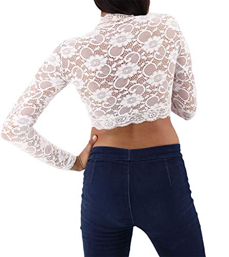 Top in pizzo bianco con maniche lunghe - bianco - 44