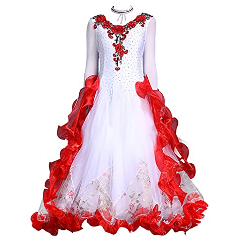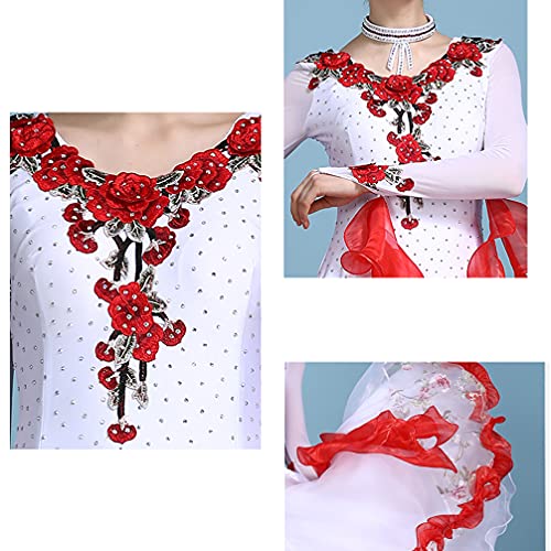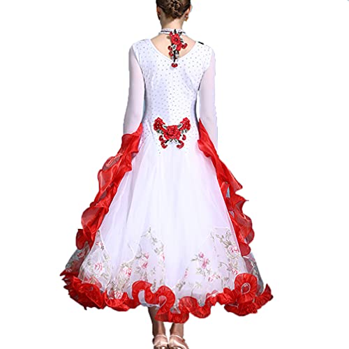 Pizzo Donna Ballo da Sala Costume da Prestazione Vestiti da Ballo Standard Competizione Pizzo Maniche Lunghe Waltz Vestiti da Ballo di Salsa Valzer Flamenco,Rosso,L