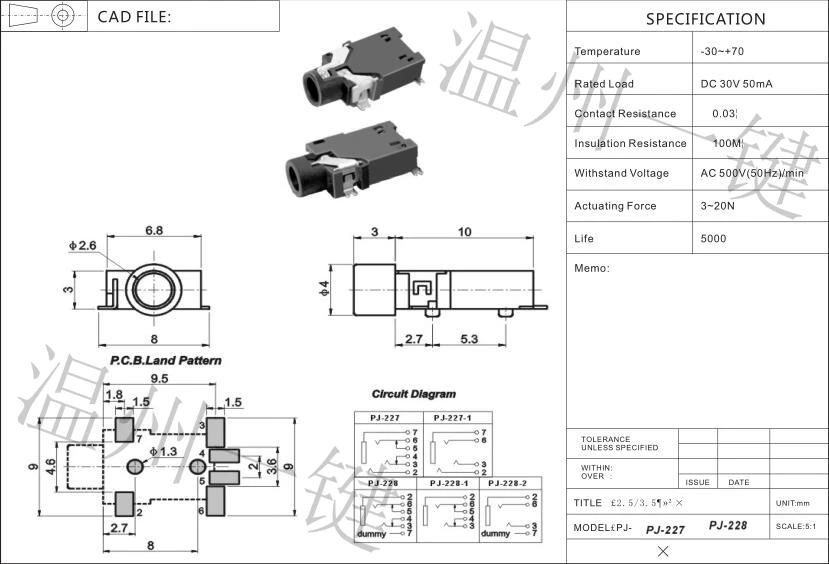 10 PCS PJ-228 power outlet 2.5 headphone socket 6 foot patch 2 fixed foot 2.5 MM socket base