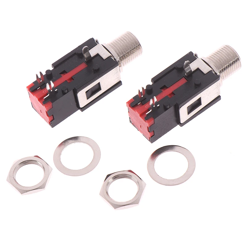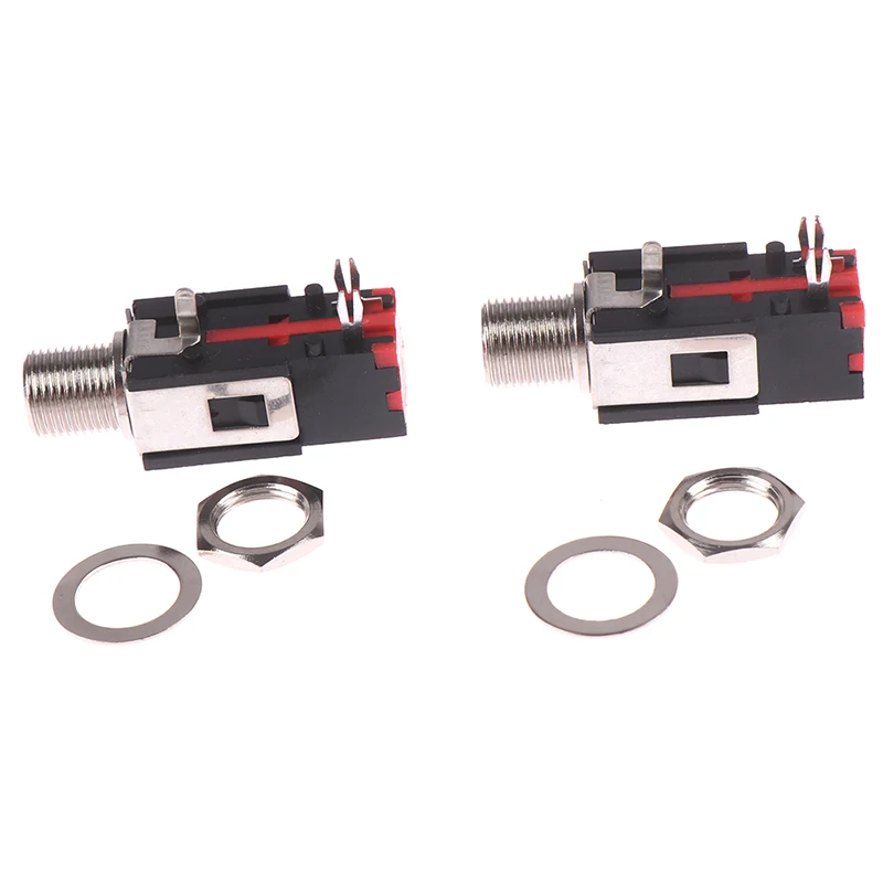 2pcs PJ-602B Right Angle Audio Connector Thread Lock Panel Mount 1/4" 6.35 Mm Stereo Phone Jack Headphone Socket