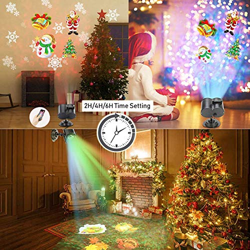 PJDDP Proiettore Luci Natale, Impermeabile IP44 Proiettore Natale Esterno Interno con 16 Lenti Intercambiabili E Telecomando, Timer 2/4/6 Ora per Decorazioni da Natale, Halloween, Festa,Giardino