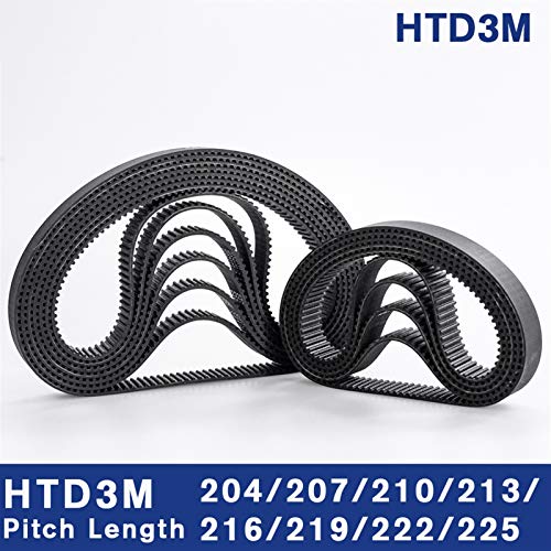 PJinloog-Cinghia di distribuzione Cintura di temporizzazione HTD3M 204/207/210/213/216/210/213/216/219/222/225MM, 6/9 / 10 / 15MM Larghezza, Gomma, Cintura dentata Cinturino Chiuso Cintura sincron