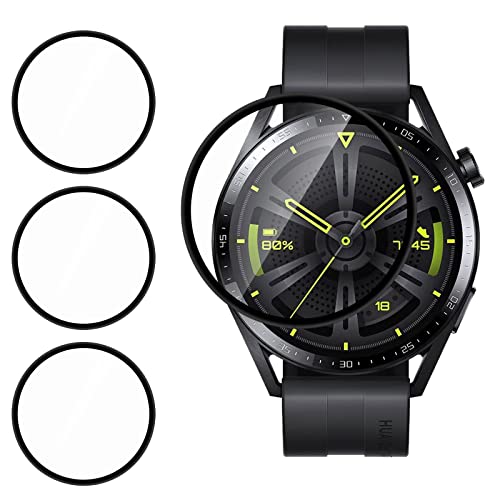Pkila Compatibile con Huawei Watch GT3 Pellicola salvaschermo 46mm [4 Pezzi], Pellicola Protettiva HD Trasparente TPU Proteggi Schermo Anti-Bolle, AntiGraffio Facile Installazione [Nero]