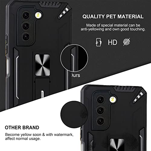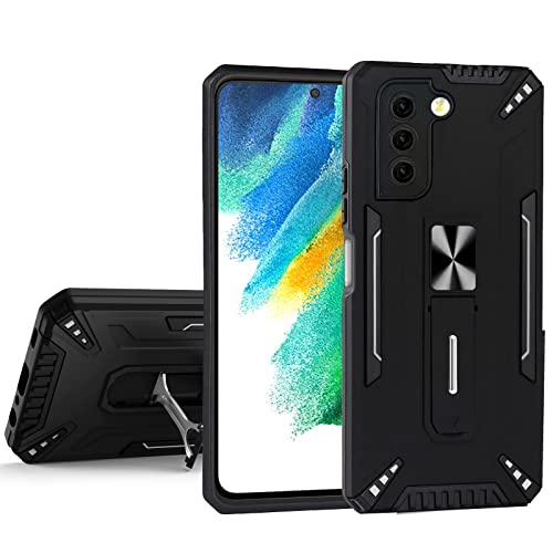Pkila Compatible with Samsung Galaxy S21 FE Case with Stand Dual Layer Hard PC + TPU Case Impact-Resistant Bumper Cover Rugged Outdoor Protective Armor Case for Samsung Galaxy S21 FE(Black)