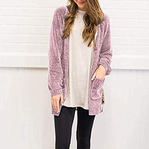 PKTOP - Cardigan da donna in morbido velluto a maniche lunghe, con tasche anteriori aperte, in ciniglia rosa S