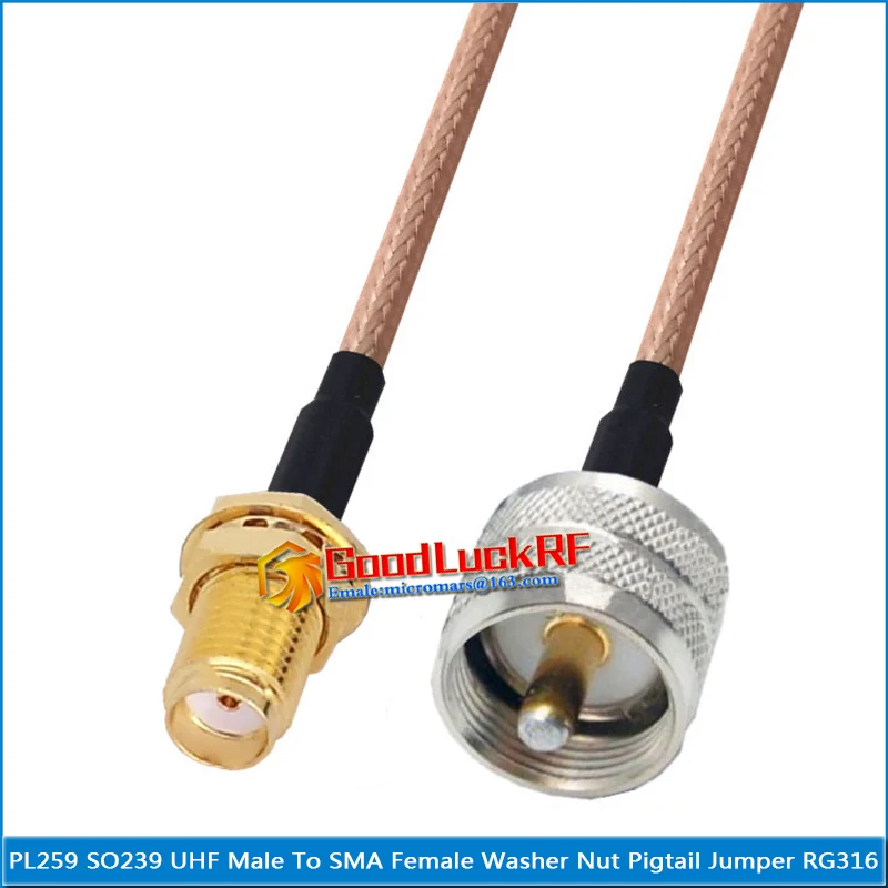 1X Pcs PL259 SO239 PL-259 SO-239 UHF Male to SMA Female Washer O-ring Bulkhead Mount Nut Plug Coaxial Pigtail Jumper RG316 Cable