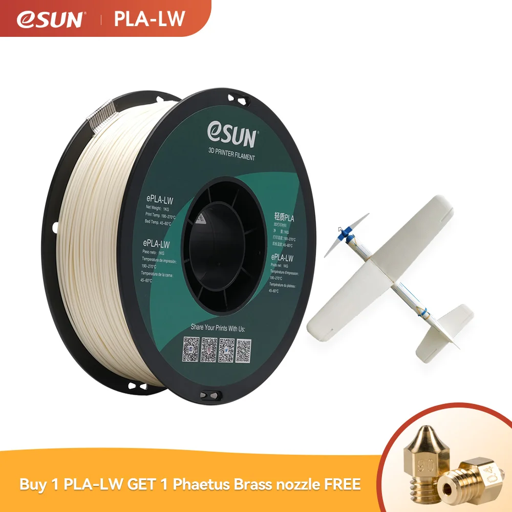 ESUN PLA-LW 3D Printer Filament 1.75mm 1KG 2.2LBS 3D Printing Filament Light Weight foam Material for 3D Printer aircraft