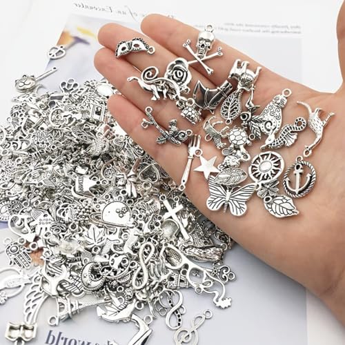 Ciondoli Misti Bigiotteria - Realizza splendidi accessori con 100 pendenti in argento - Ideali per collane, orecchini, braccialetti, portachiavi e molto altro ancora.