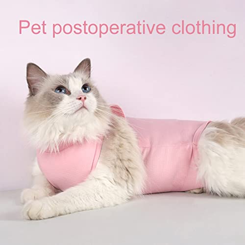PLABBDPL Body Gatto Post Operatorio,Tutina professionale per gatti per ferite addominali o malattie della pelle tuta per il recupero di chirurgia del gattino alternativa(M, Rosa)
