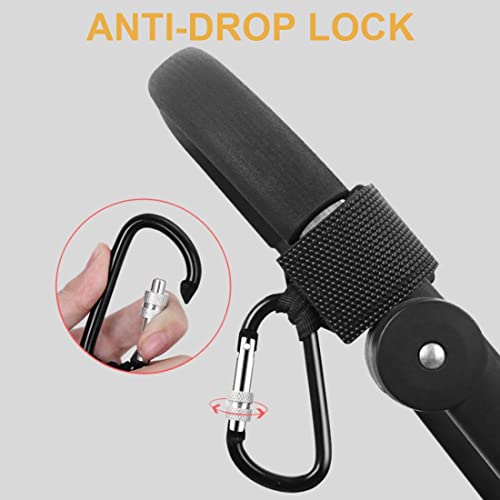 PLABBDPL 2 Pezzi Gancio Passeggino Universale,Ganci per Passeggino Universale Sicuri & Resistenti,Moschettoni Allumini Per Carrozzina Bici Auto Carrello Appendi Sacchetti Borsa Zaino, Nero