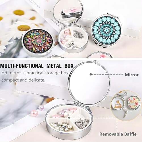 PLABBDPL Portapillole Impermeabile,Confezione da 2 Portapillole Rotonde in Metallo,Portapillole Piccolo con Organizzatore di Vitamine a Specchio per la Vita Quotidiana e i Viaggi